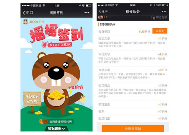 用户可以在景区公众号做任务赚积分、消费积分,有利于活跃公众号粉丝,增强粉丝粘性。